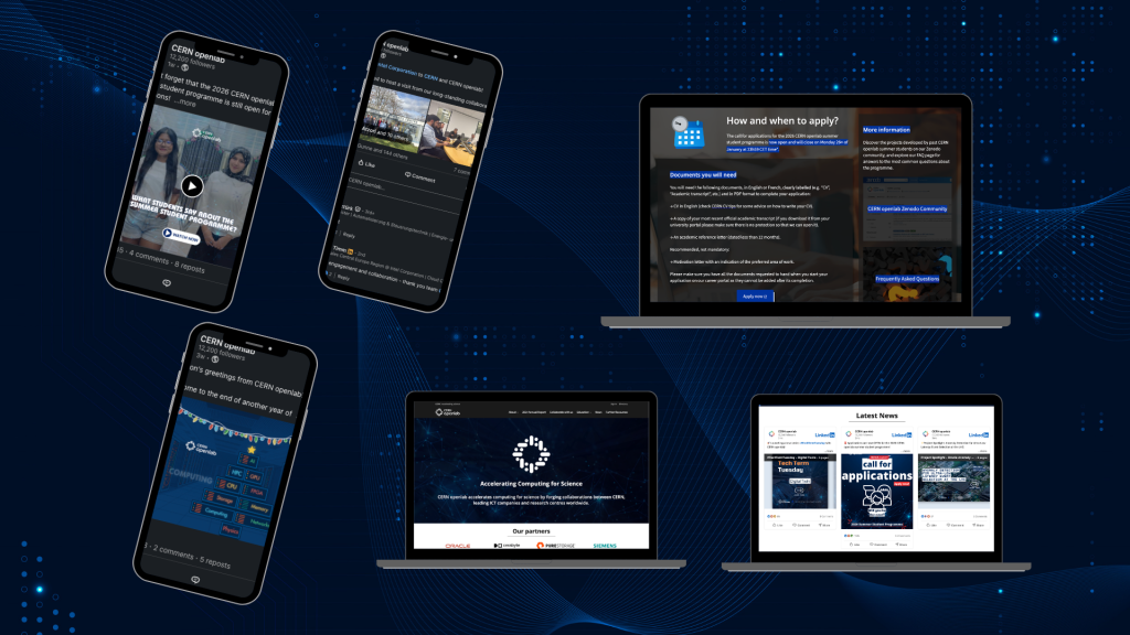 LinkedIn has become a key communication channel for CERN openlab, supporting timely outreach and engagement with the wider scientific, technological, and innovation communities. The CERN openlab LinkedIn account was launched in July 2024 and saw significant growth throughout 2025, reaching more than 10,000 followers and generating over one million impressions. Through regular updates highlighting projects, events, collaborations, and opportunities, LinkedIn has strengthened CERN openlab’s digital visibility, enabled broader dissemination of activities, and fostered interaction with partners, researchers, and stakeholders worldwide.