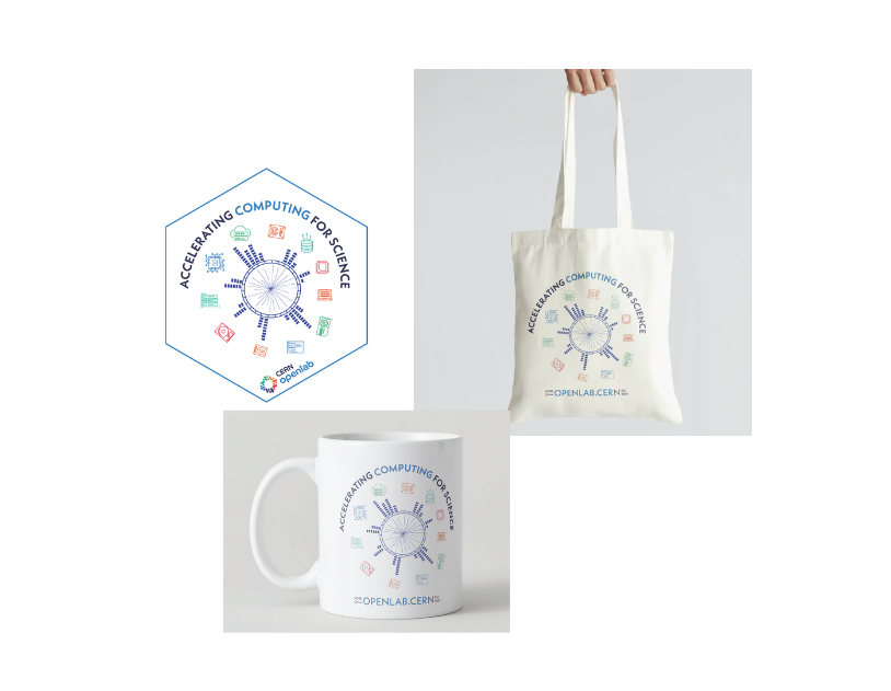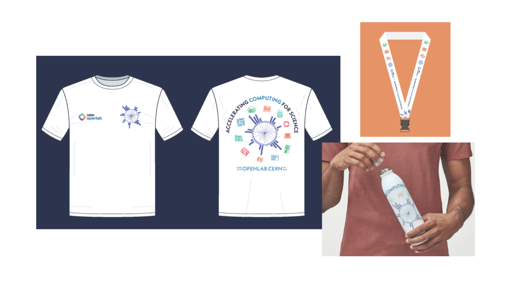 In 2025, CERN openlab developed a new range of promotional items (including T-shirts, tote bags, water bottles, mugs, and lanyards) to support outreach activities, increase visibility, and reinforce the project’s visual identity at events and within the community.